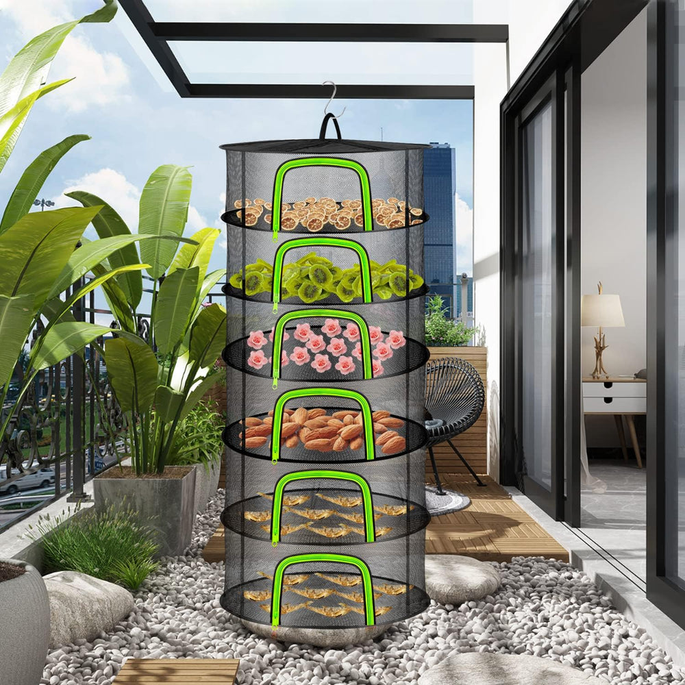 Coopache Trockennetz Kräuter 6-lagiges Kräutertrockner Hängend Netz mit U-förmiger Reissverschluss,