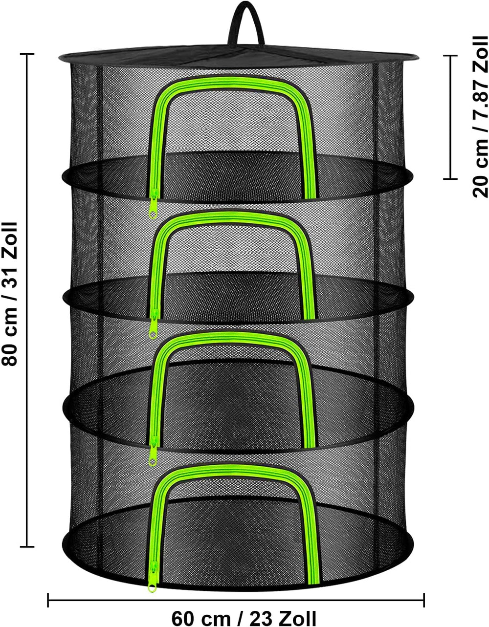 Coopache Trockennetz Kräuter Schwarz, 4-lagiges Kräutertrockner Hängend mit S-förmige Haken, Zipper