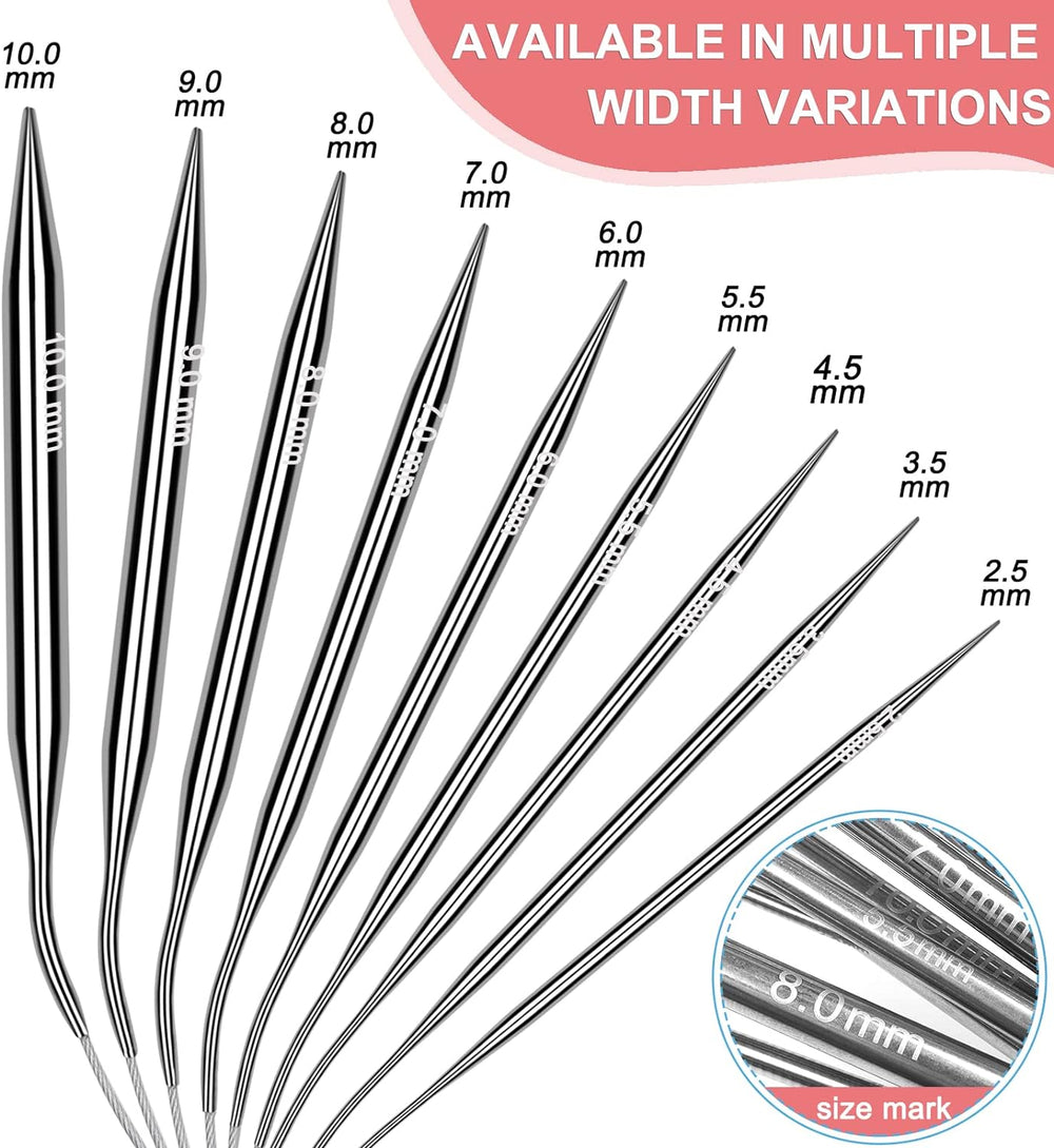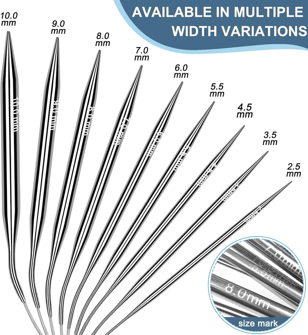 Coopay Edelstahl Rundstricknadel Set mit Etui, 9 Stück Rundstricknadeln 80cm mit Nadellehre und Häke