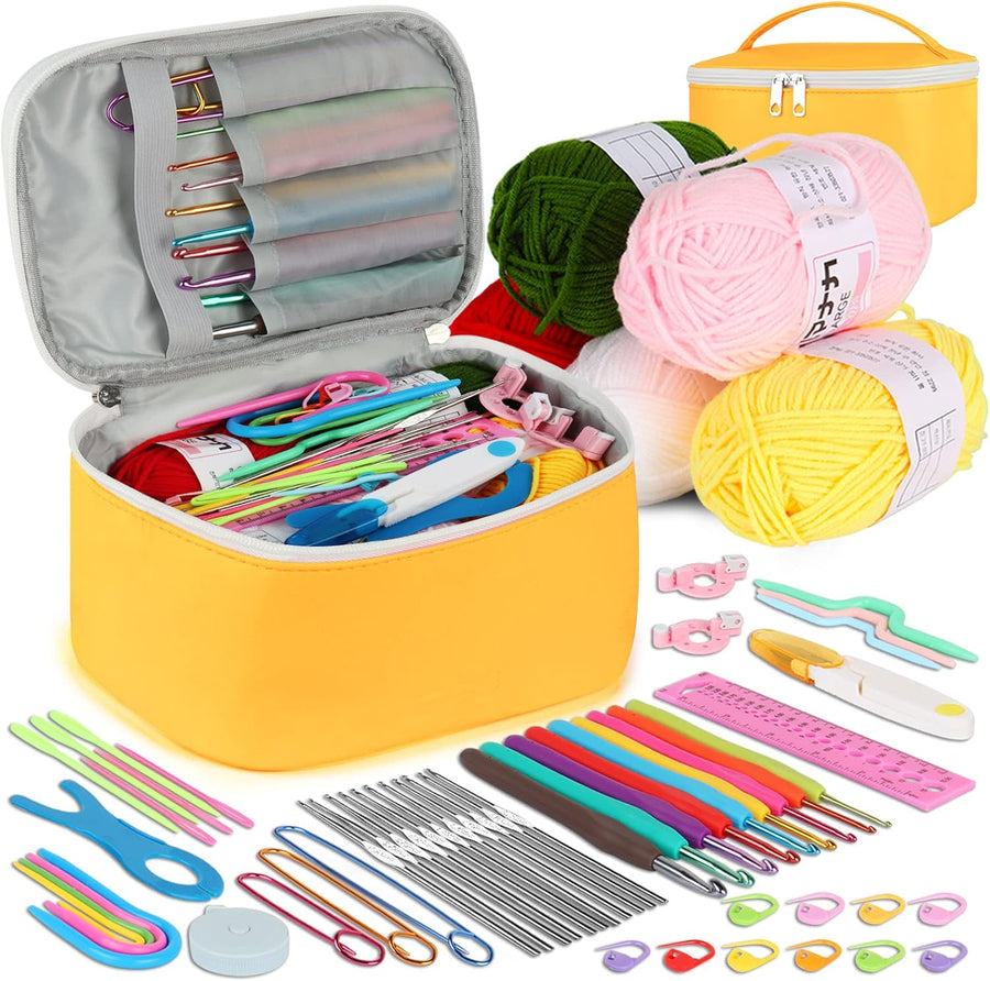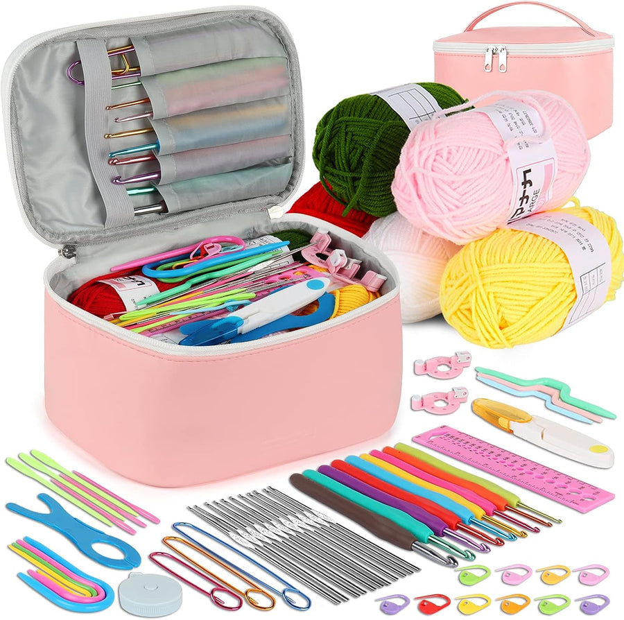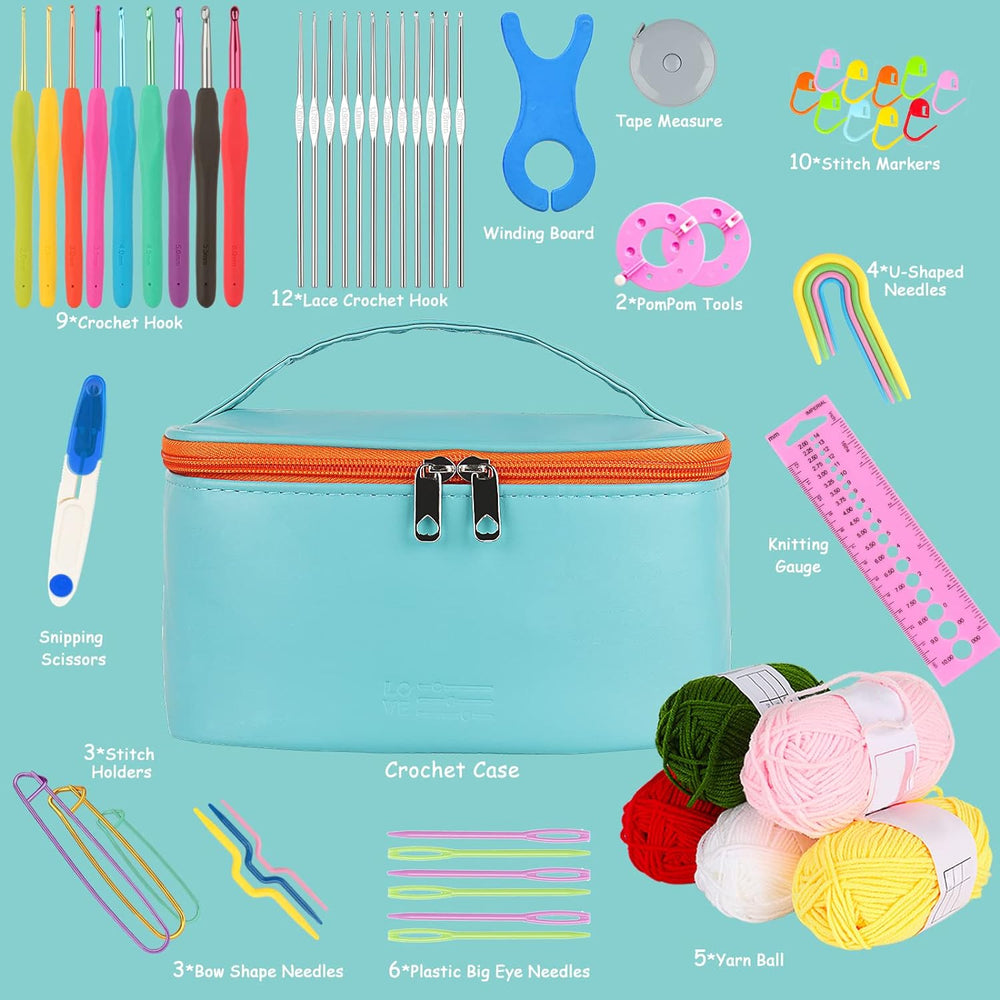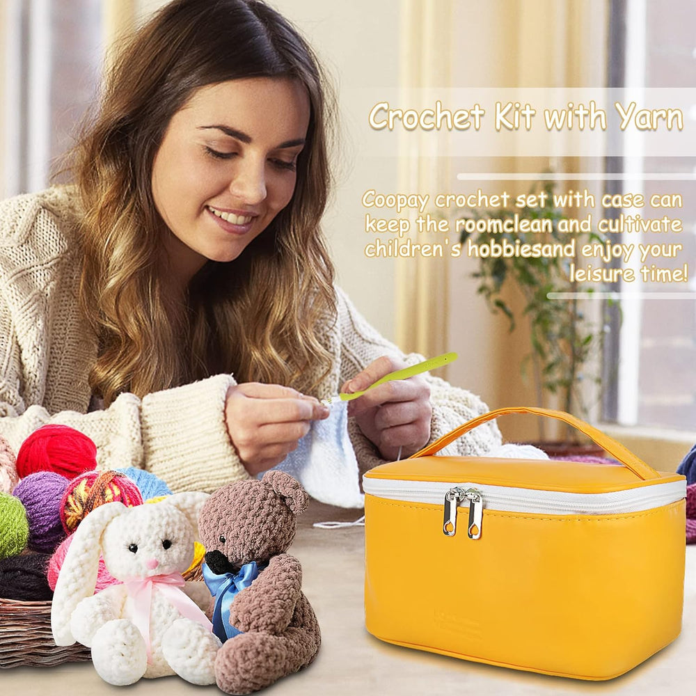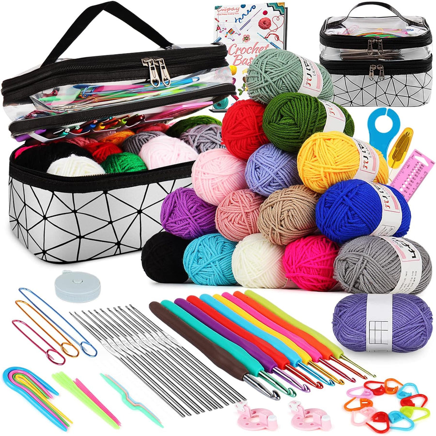 Coopay Häkelset für Anfänger, Häkelnadel Set mit 16 Wolle und Doppel Layer Tasche, Häkeln Set mit Hä