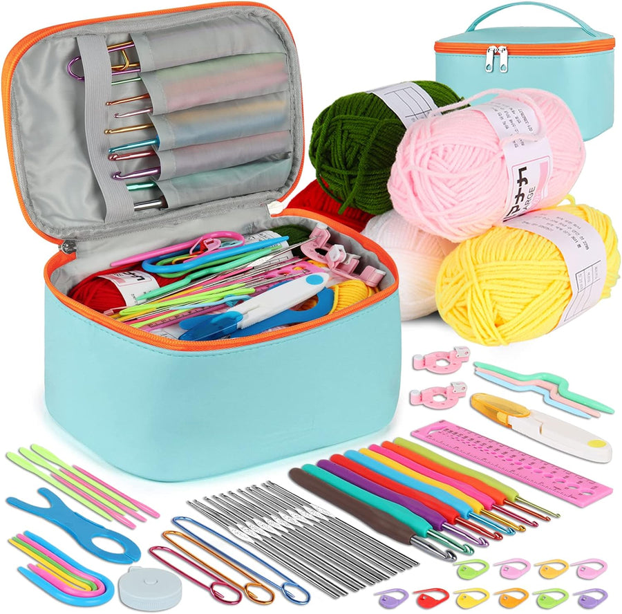 Coopay Häkelnadel set mit Klein Garn Aufbewahrungstasche, 10 Wolle zum Häkeln, 64 Stück Häkelset für
