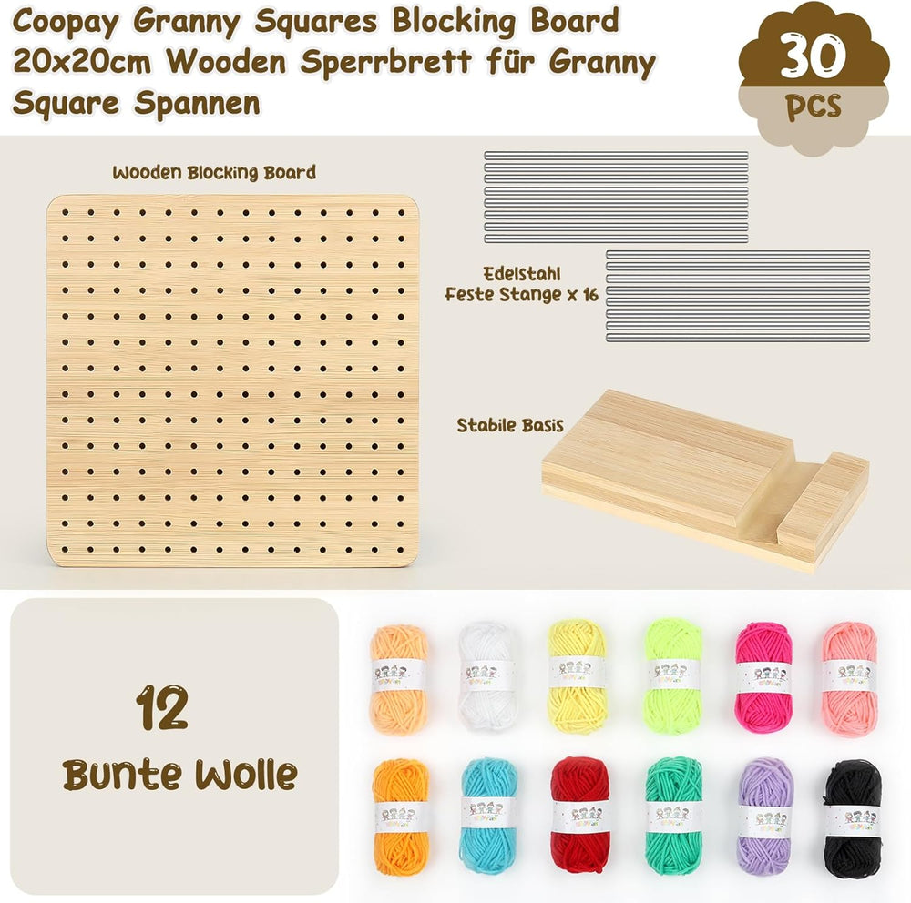 Coopay Sperrbrett für Granny Square, Bambus Blockierbretter und 20 Edelstahl Stabstiften, Tolles Too