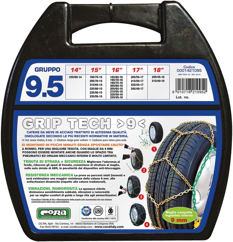 Cora 0001421095 Schneeketten für Auto Grip Tech, 9 mm, Gruppe 9.5, Set von 2