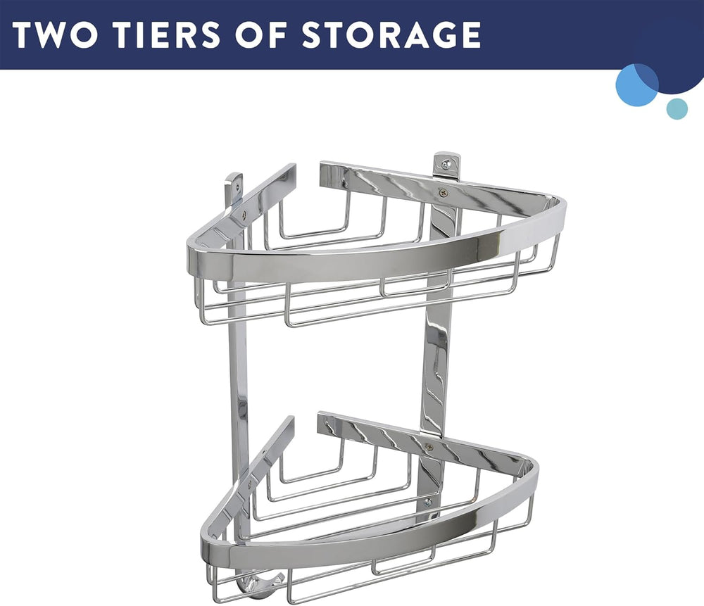 Croydex Aluminium Large Two Tier Corner Basket, Metal, Chrome, 20.5x31x38.5 cm Grosser Eckkorb mit z