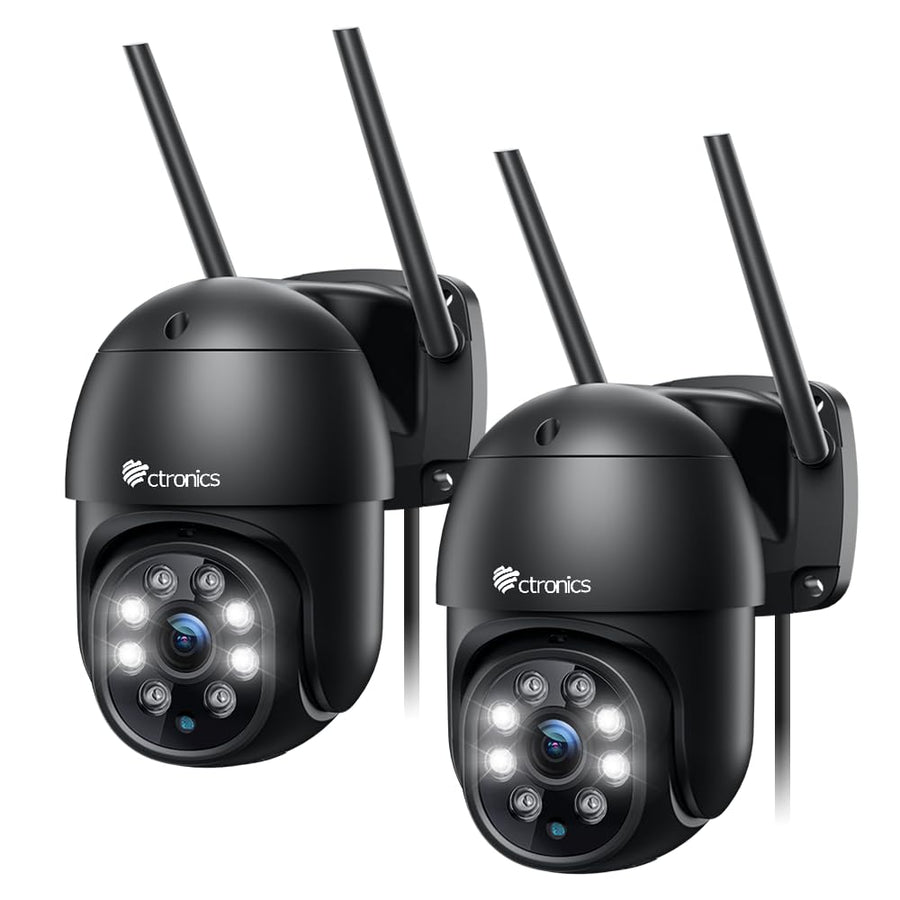 PTZ Überwachungskamera Aussen 2er Set, Ctronics 1080P Kabellose IP Kamera Outdoor WLAN, 350°/90° Sch