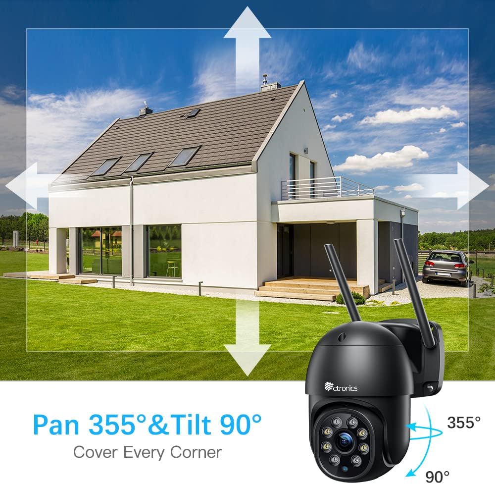 2K 4MP Überwachungskamera Aussen WLAN, 2560×1440P Ctronics PTZ WiFi IP Kamera Outdoor mit Automatisc