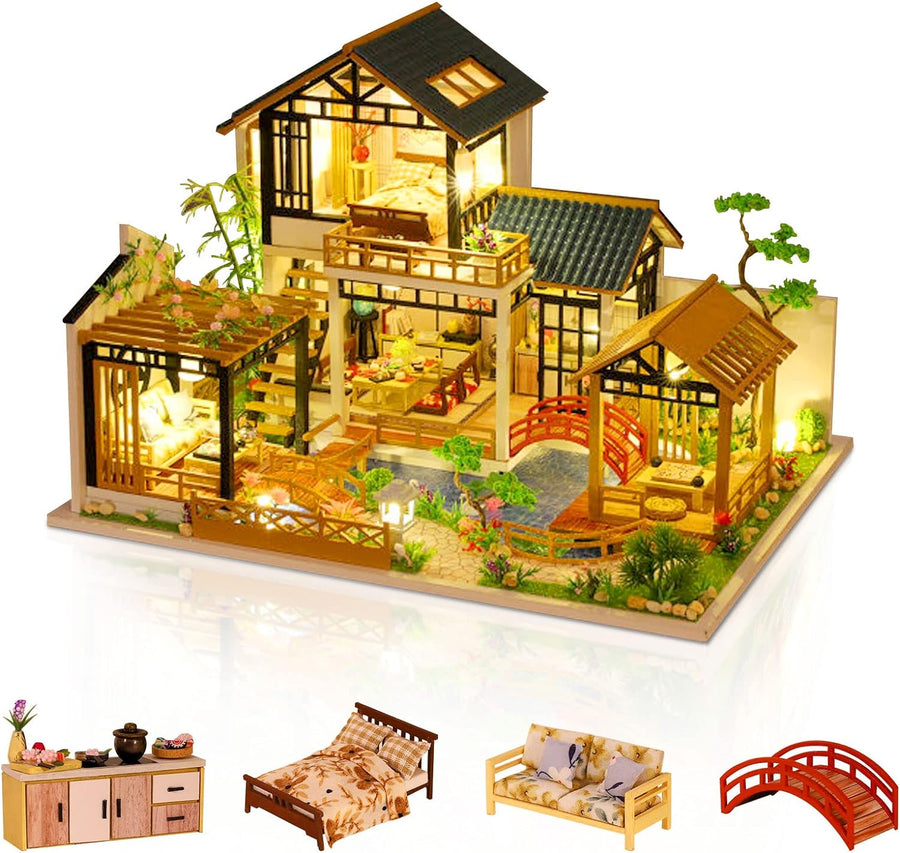 Cuteefun DIY Puppenhaus Miniatur Haus zum Selber Bauen für Erwachsene, Miniatur Puppenhaus Kit mit M