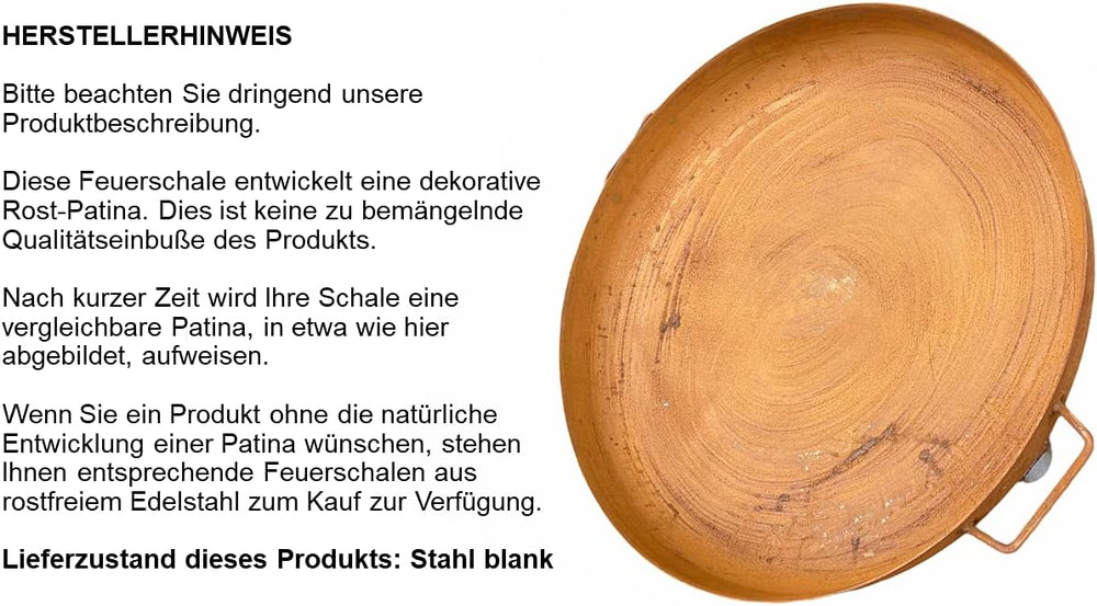 Czaja Feuerschale Ø 80 cm mit Wasserablaufbohrung Legierter Stahl Ø 80cm Typ Bonn, Legierter Stahl Ø