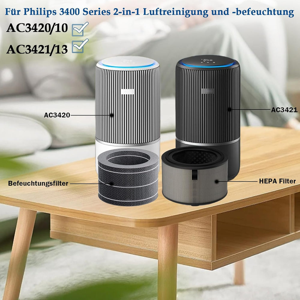FY3400 FY3401 Ersatzfilter Set für Philips 3400 Serie AC3420/10 AC3421/13 2-in-1 Luftreiniger und Lu