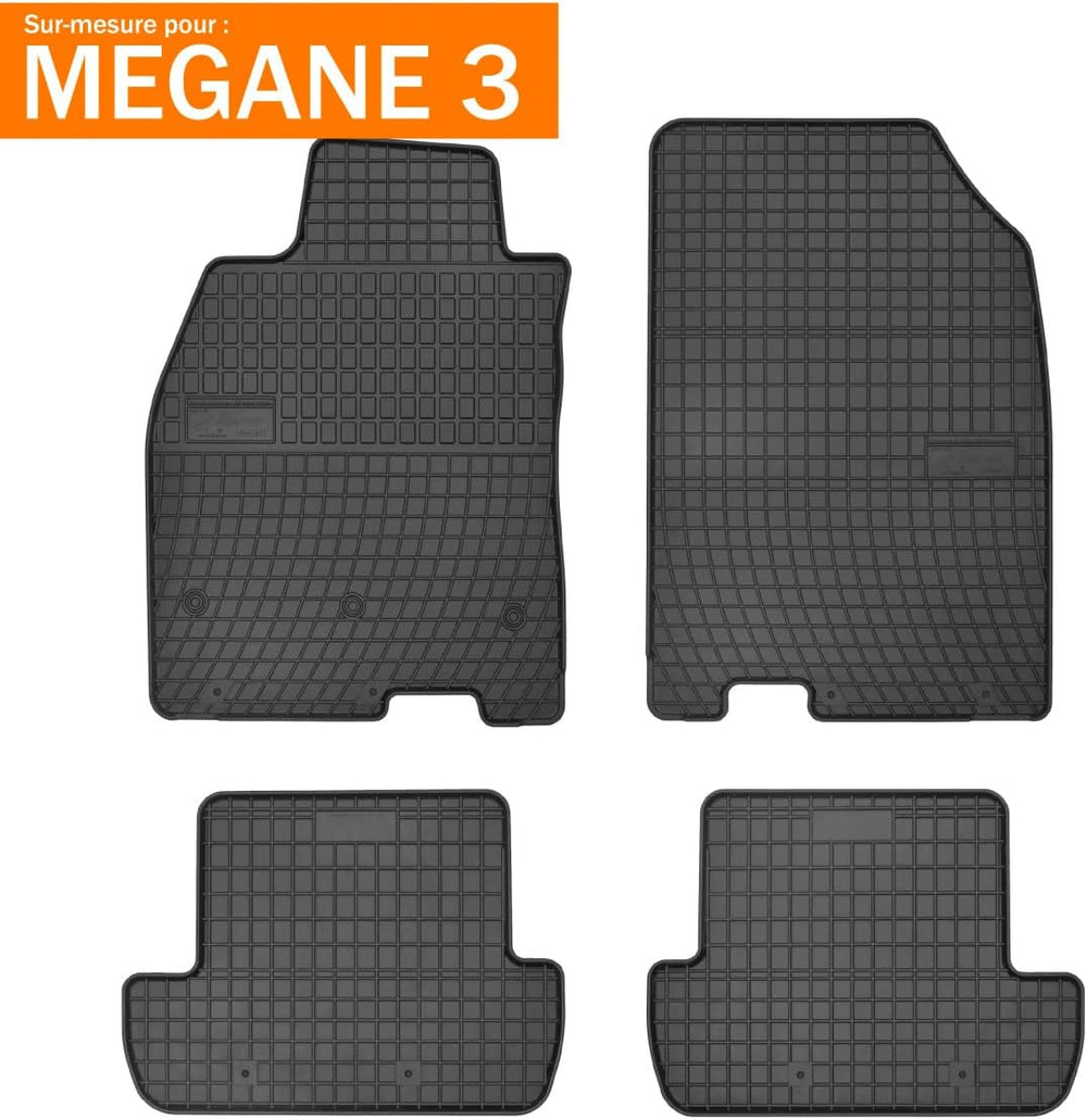 DBS - Autoteppich - Massgeschneidert für Megane 3 - Mit Befestigungsclips - Antirutschmatten - 4 Stü
