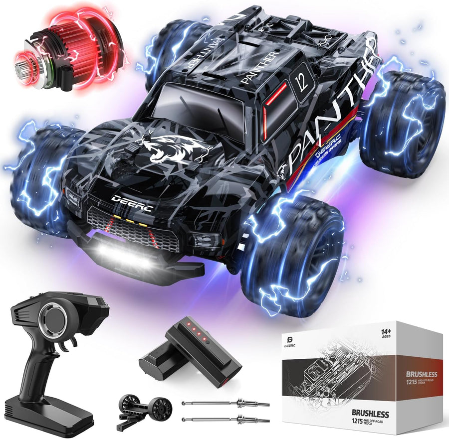 DEERC 1:14 Brushless RC Auto für Erwachsene, 46+ mph Off-Road, 2 * 3S Lipo, 4WD wasserdicht, 7 Licht
