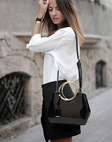 DEERWORD Damen Taschen Handtaschen Elegant Frau Schultertaschen Lack PU-Leder Henkeltaschen Grau, Gr