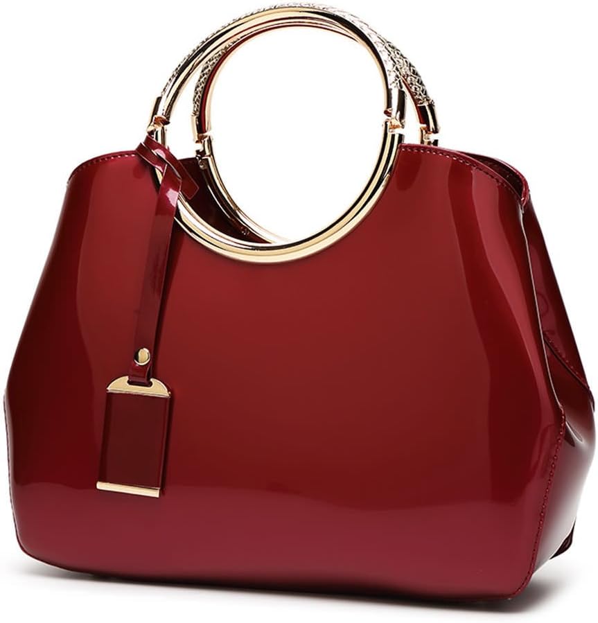DEERWORD Damen Taschen Handtaschen Elegant Frau Schultertaschen Lack PU-Leder Henkeltaschen Weinrot,