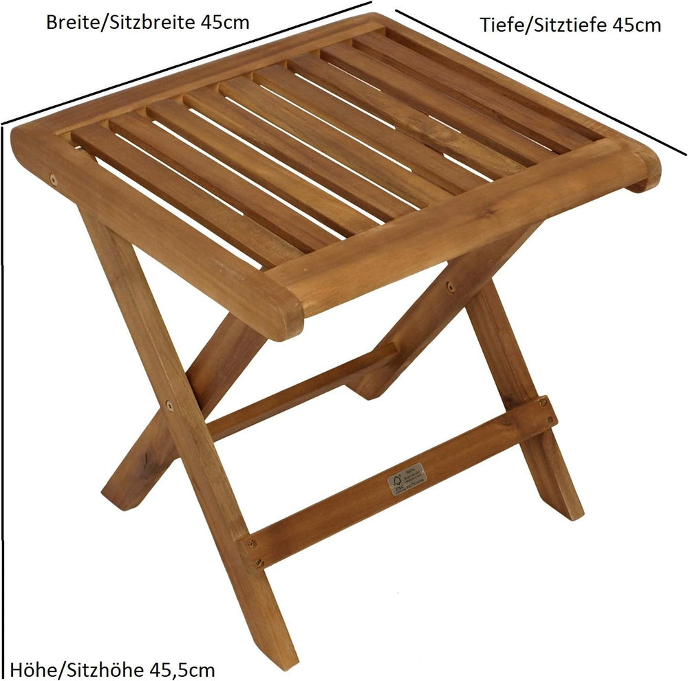 DEGAMO Garten Klapphocker Sitzhocker Hocker France 45x45cm, Akazie geölt braun, Indoor und Outdoor