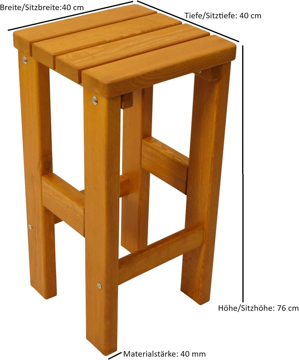 DEGAMO Barhocker Villach aus massivem Kiefernholz, extra stabil 40mm stark, hell lackiert, für Innen