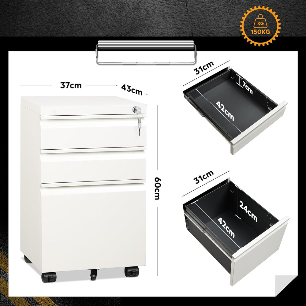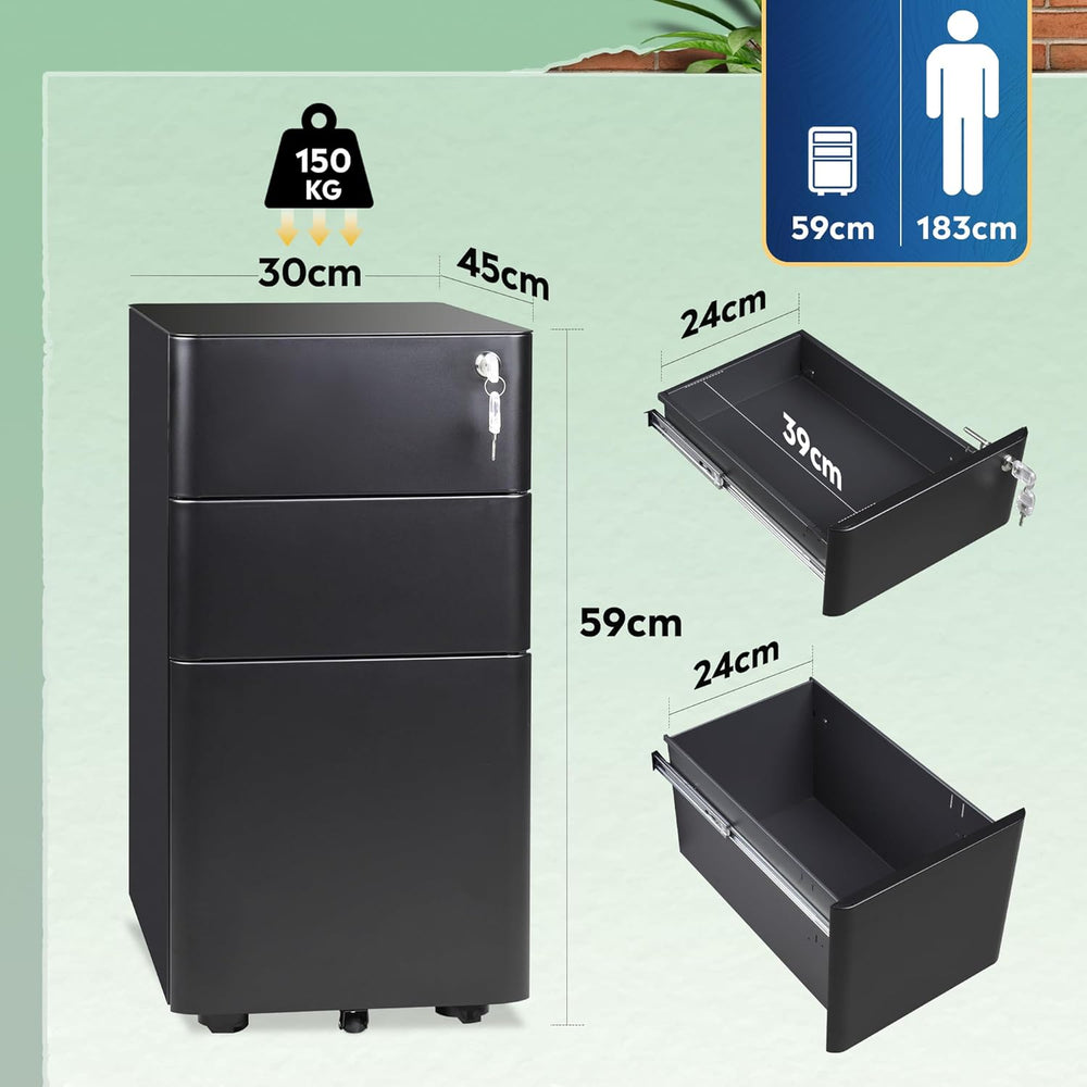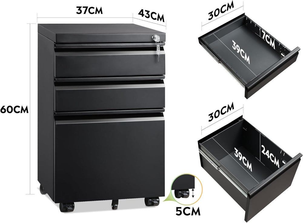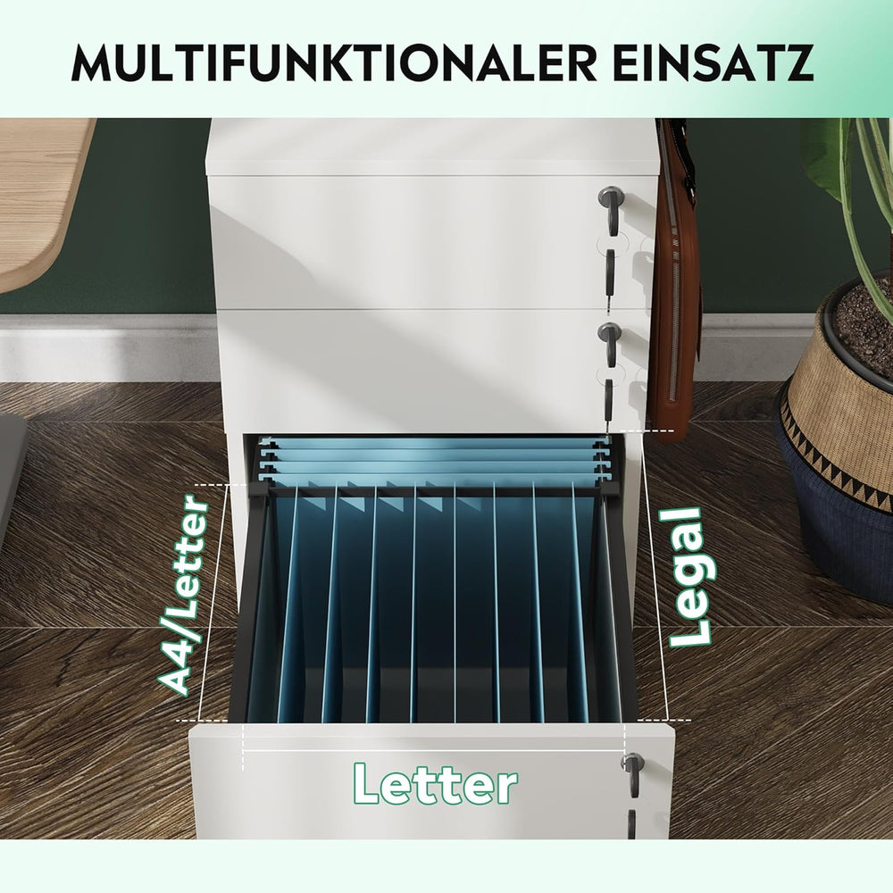 DEVAISE Rollcontainer, Aktenschrank Abschliessbar mit 3 Schubladen, Büroschrank für A4/Legal/Letter,
