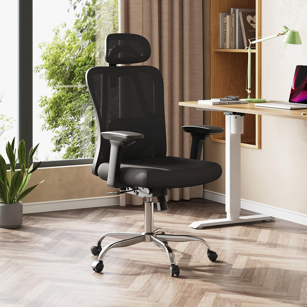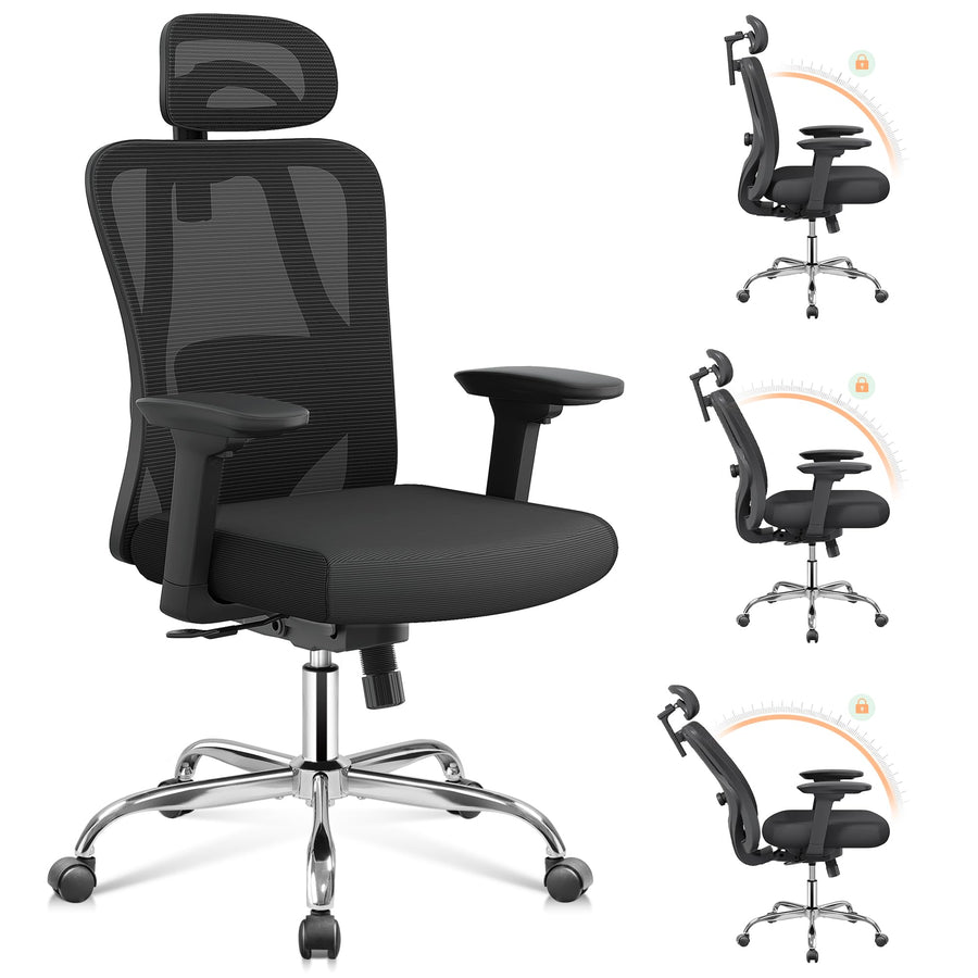 DEVAISE Bürostuhl Ergonomisch: Schreibtischstuhl mit Wippfunktion, Verstellbarer Kopfstütze & Lenden