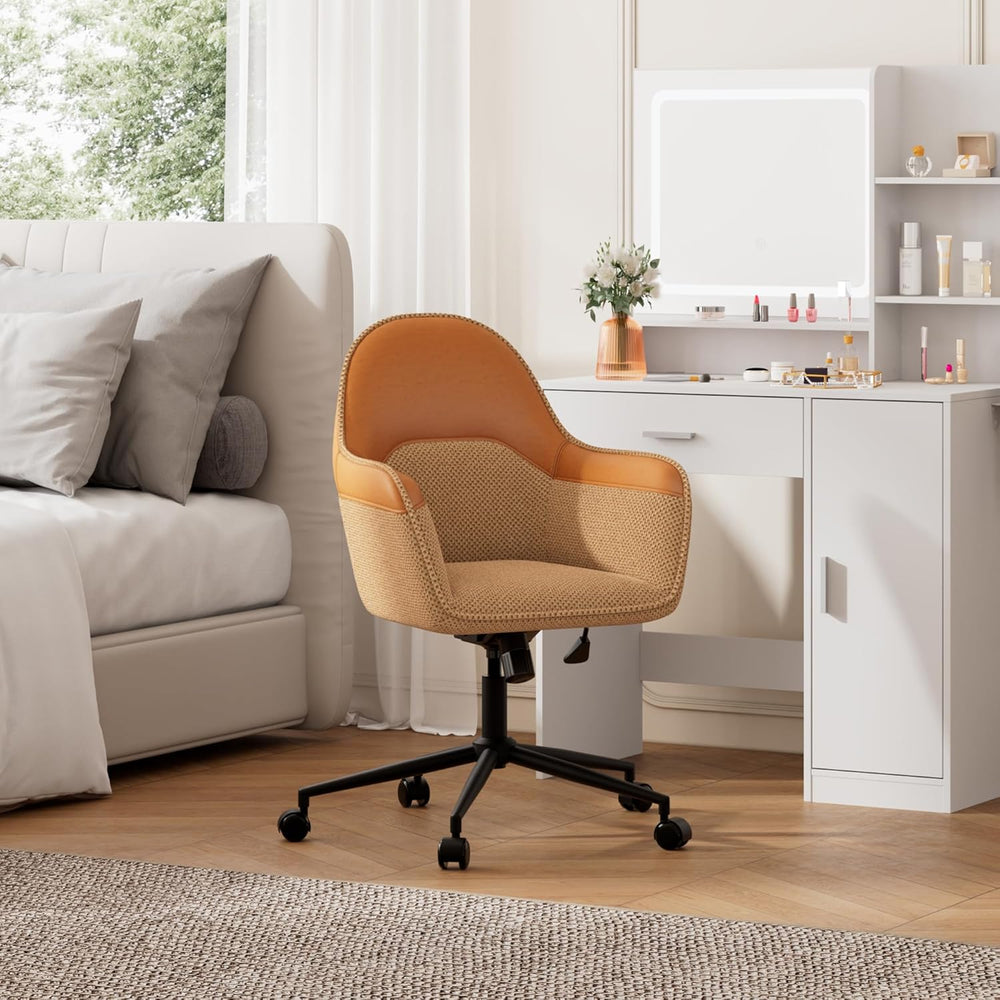 DEVAISE Homeoffice Stuhl, Ergonomischer Schminktischstuhl mit 9 cmKissen, neigbar bis 105°, höhenver