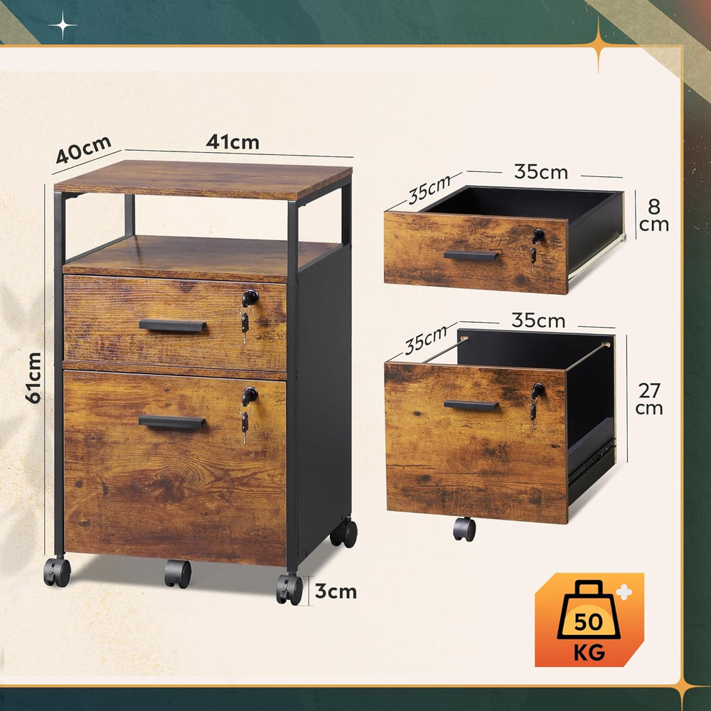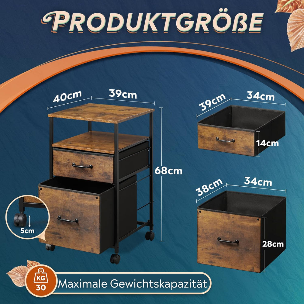 DEVAISE Rollcontainer mit 2 Schubladen und offenen Ablagen, Mobiler Aktenschrank mit Rollen, Drucker
