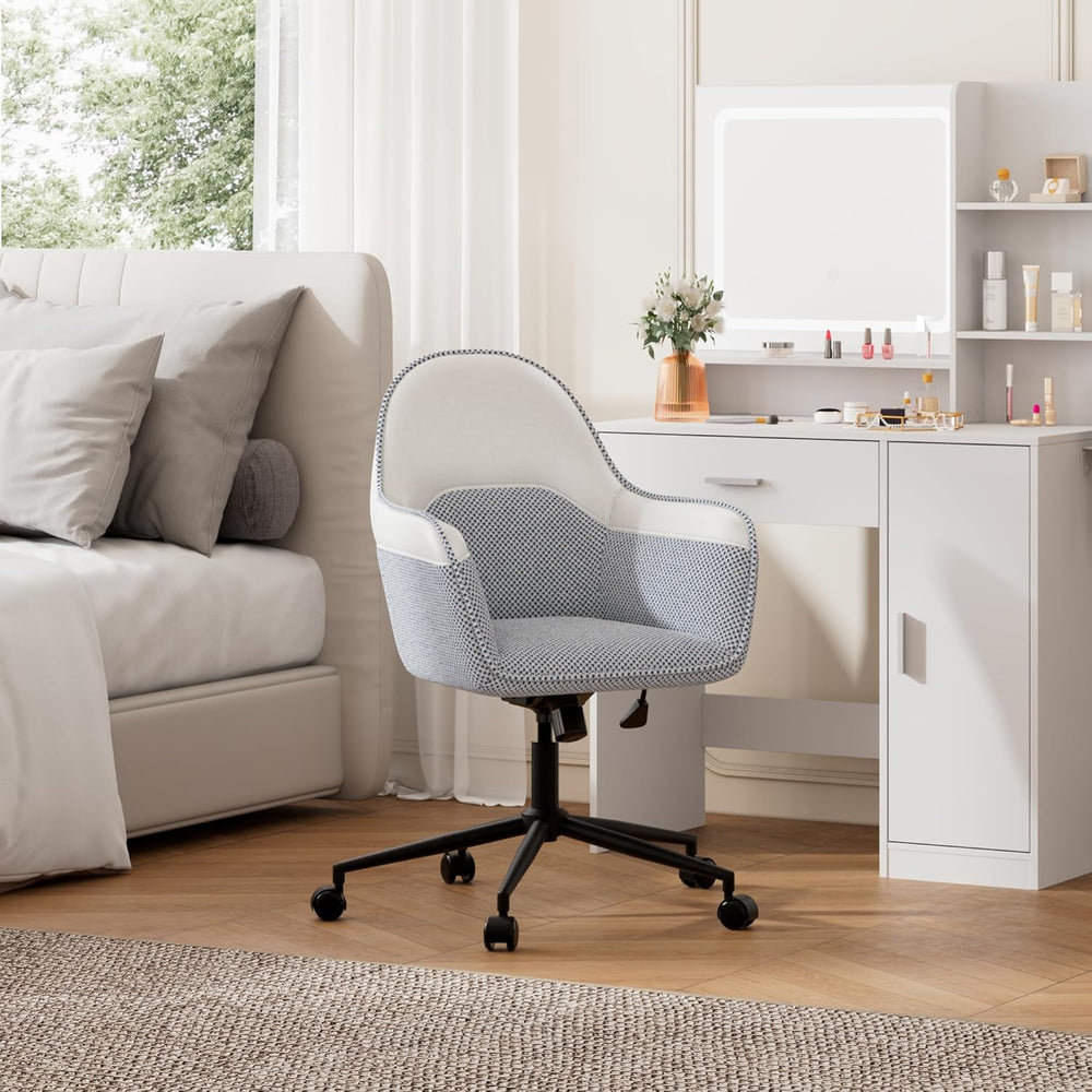 DEVAISE Homeoffice Stuhl, Ergonomischer Schminktischstuhl mit 9 cm Kissen, neigbar bis 105°, höhenve