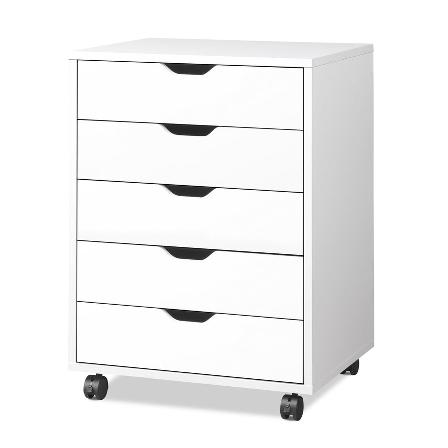 DEVAISE Rollcontainer mit 5 Schubladen, Mobiler Aktenschrank mit Rollen, Schreibtisch Unterschrank f