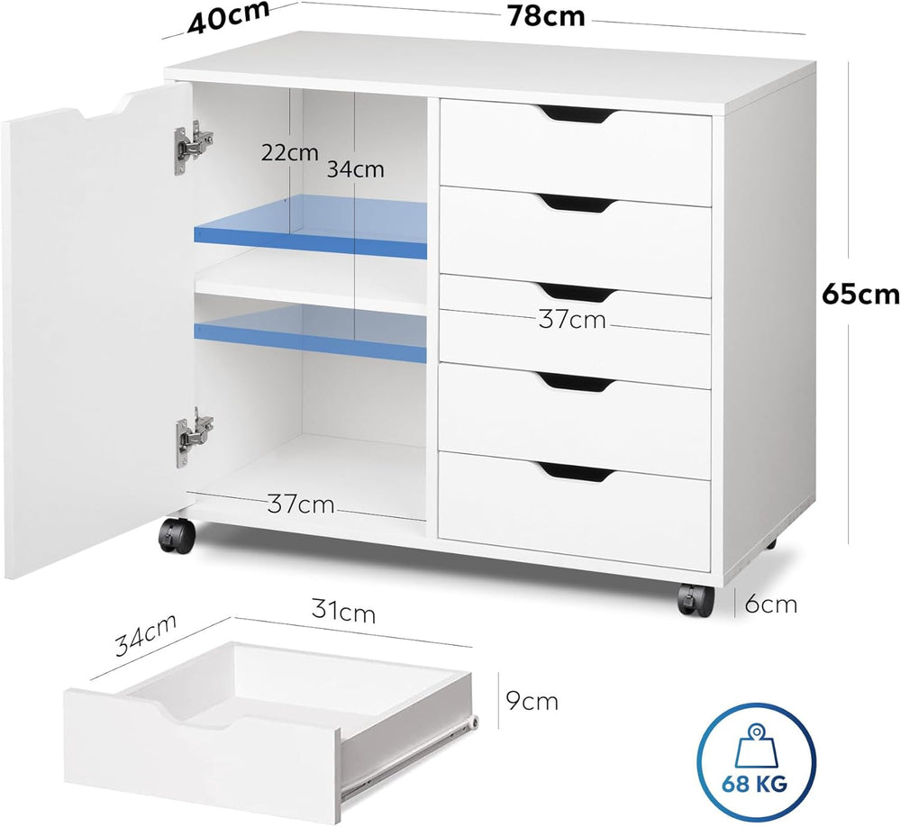 DEVAISE Rollcontainer mit 5 Schubladen und Schrankfach, Mobiler Aktenschrank mit Rollen, Schreibtisc