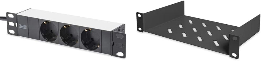 DIGITUS 3-Fach Steckdosenleiste - 1HE - 10-Zoll (254 mm) - Silber/Schwarz DN-95411 & Fachboden - 1HE