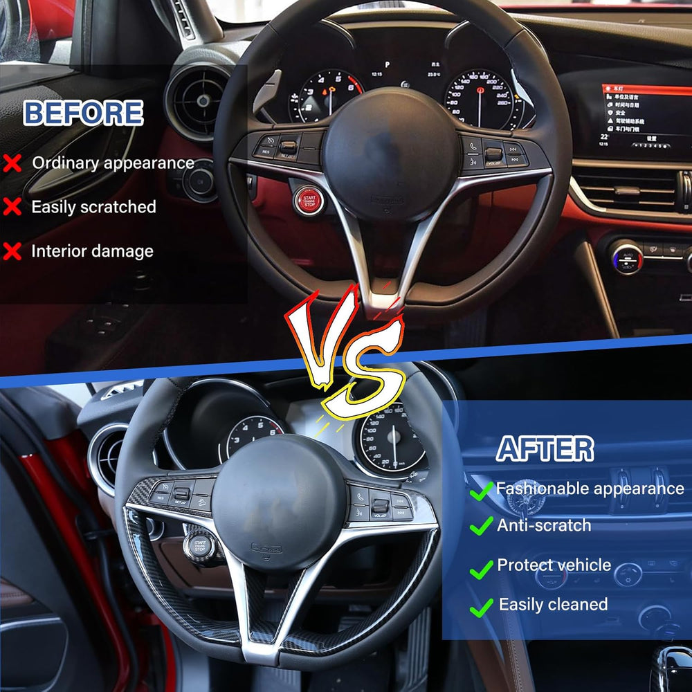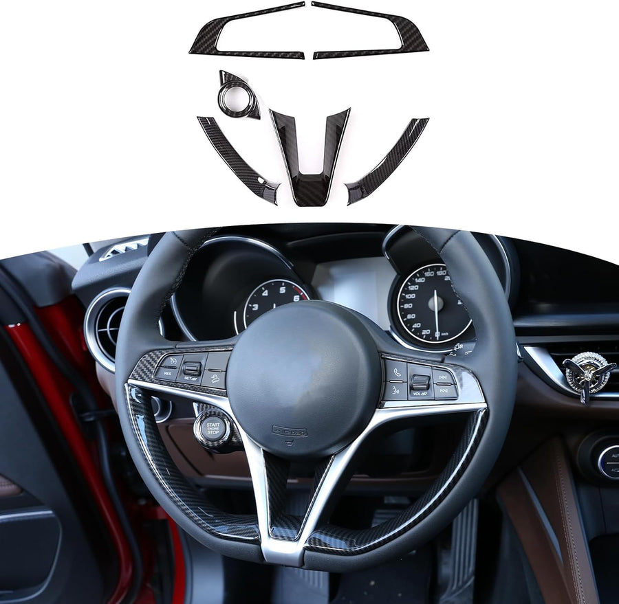 DIYUCAR Karbonfaser-Aufkleber aus ABS-Kunststoff, Auto-Lenkrad-Dekoration, Verkleidung für Giulia St