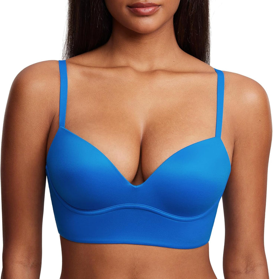 DOBREVA BH Damen ohne Bügel Push Up T Shirt BHS Gepolstert Bustier Soft Nahtloser 90A Insel Blau, 90