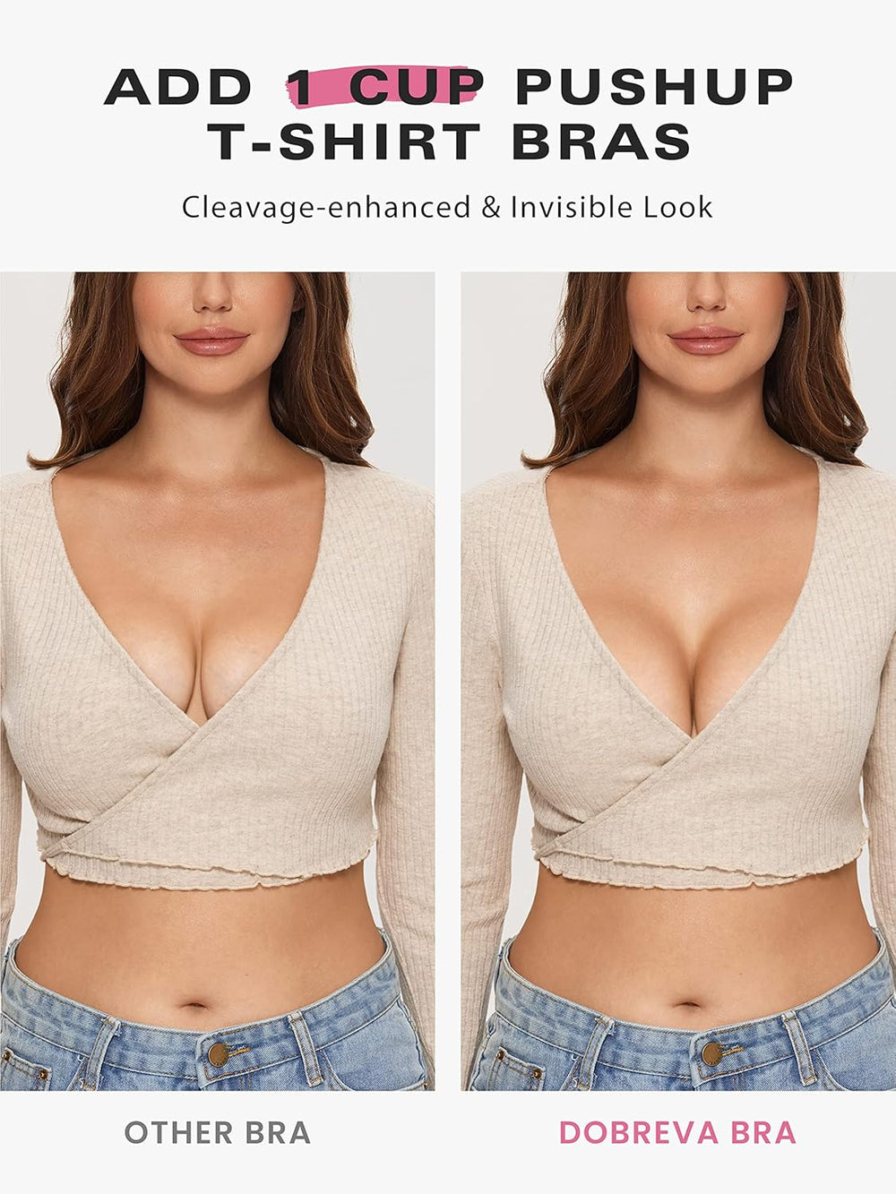 DOBREVA BH Damen ohne Bügel Push Up T Shirt BHS Gepolstert Bustier Soft Nahtloser 70C Nacktes Rosa,