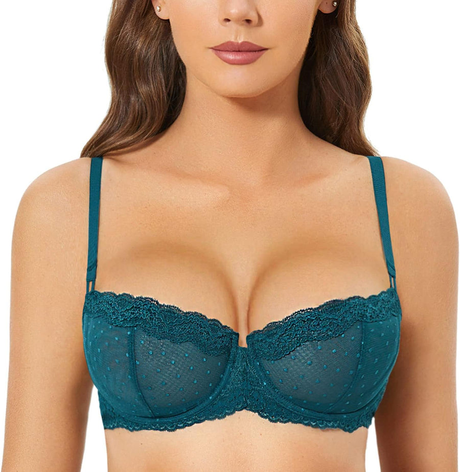 DOBREVA Balconette BH Damen mit Bügel Dirndl Push Up Sexy BHS Spitze Grosse Grössen Ungefüttert 80D