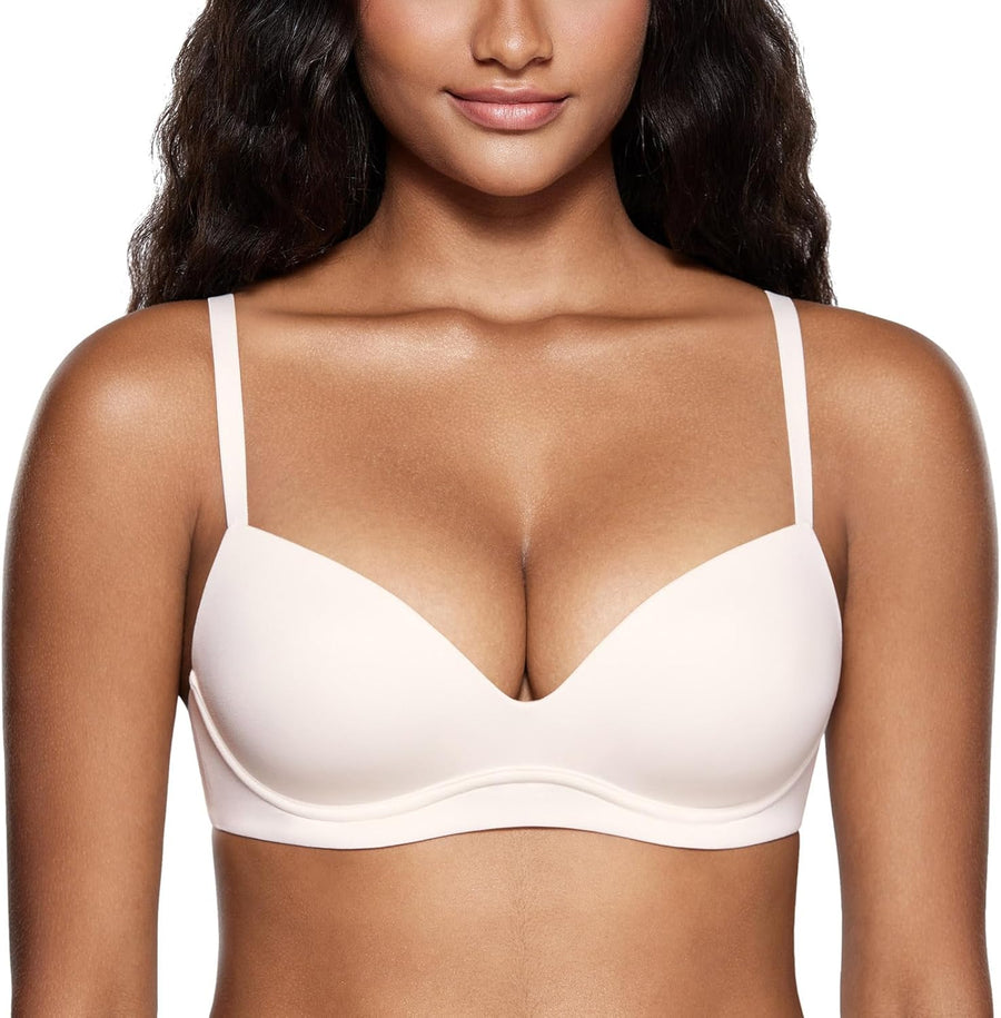 DOBREVA BH Damen ohne Bügel Push Up T Shirt BHS Gepolstert Bustier Soft Nahtloser 70AA Blush Beige,