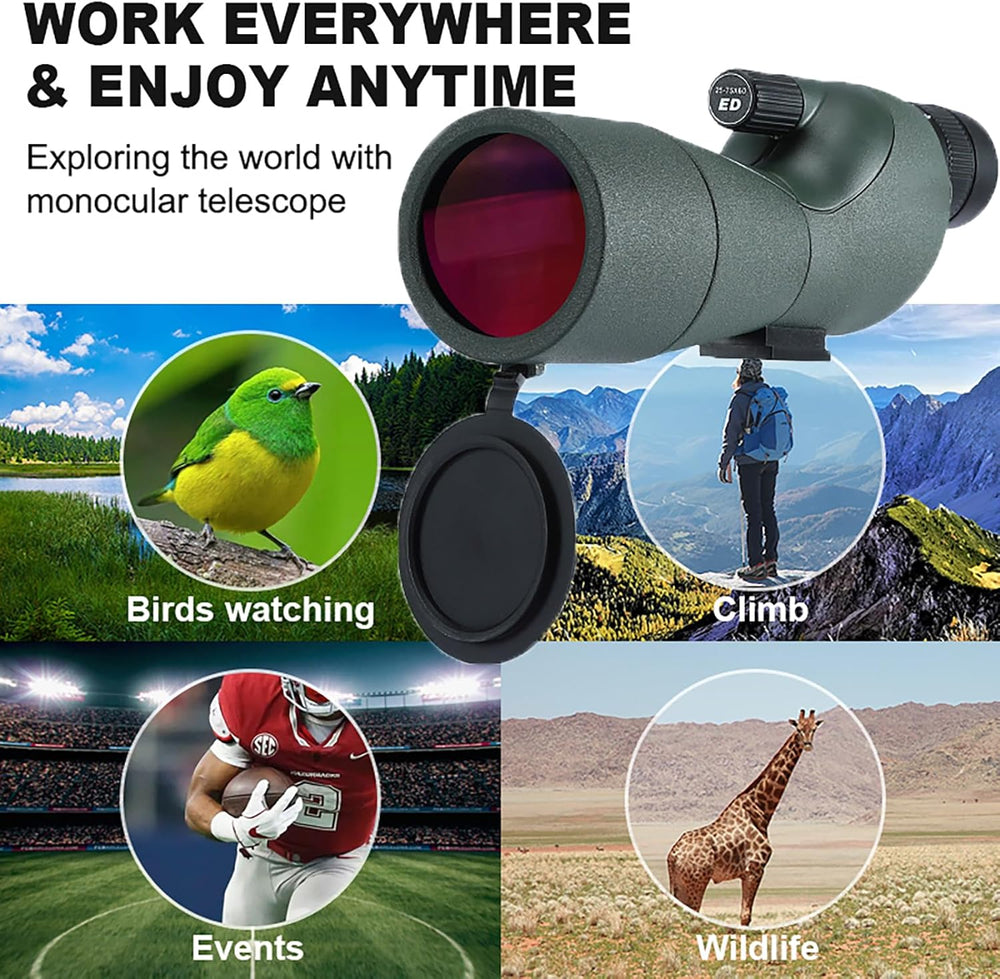 25-75X60ED Monokular Zoom Teleskop mit BAK4 Prisma FMC Fernrohr Erwachsene with Adapter and Tripod T