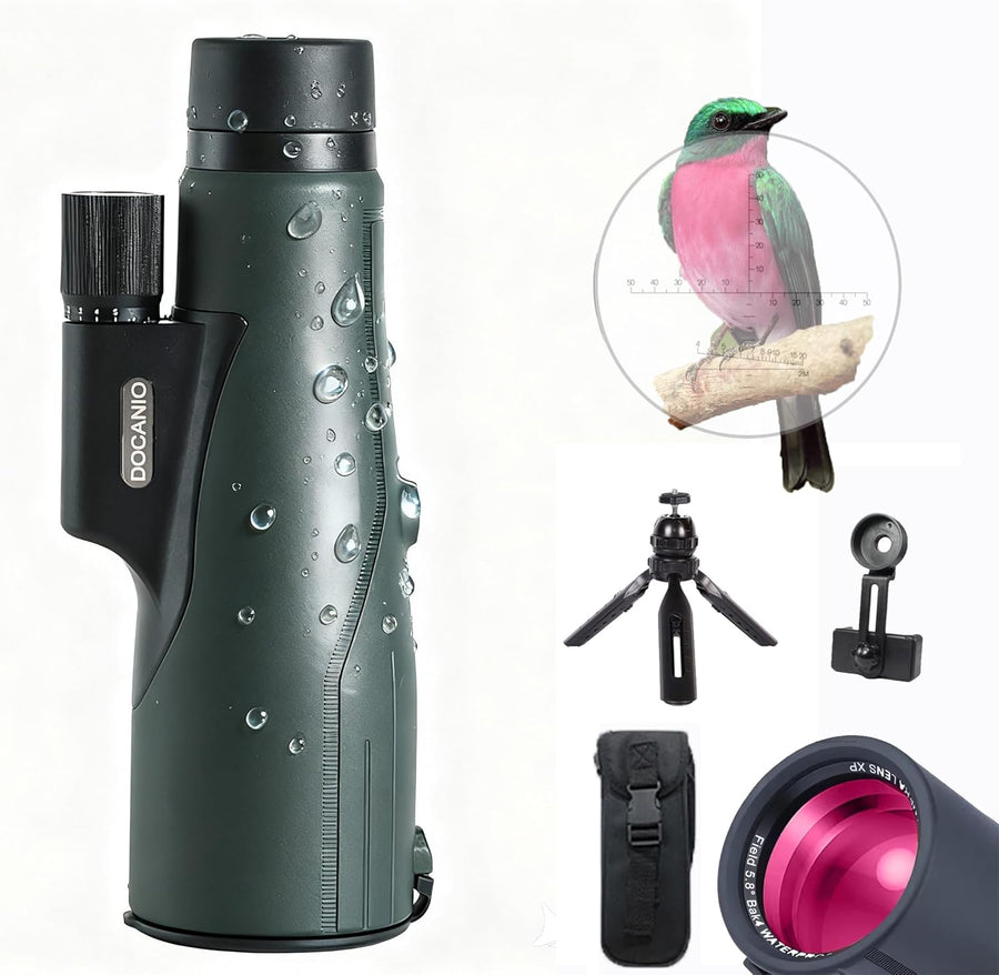 DOCANIO Monokular Teleskop 12X56 ED Monokular mit Nachtsicht, IPX7 Wasserdicht Fernrohr Erwachsene m