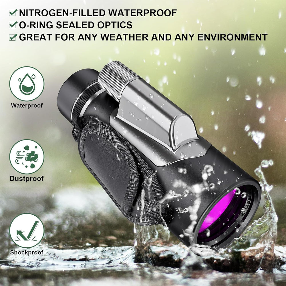 Monokular 12x42 Teleskop mit Nachtsicht | Fernrohr Erwachsene mit BAK4 HD FMC with Adapter and Tripo