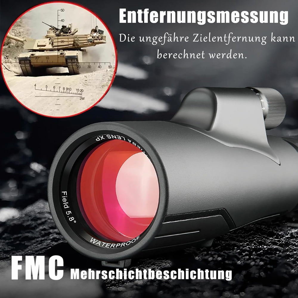 Monokular 12x56ED mit Entfernungsmesser Teleskop IPX7 Stickstoffgefüllt Wasserdicht, 21MM Okular,BAK