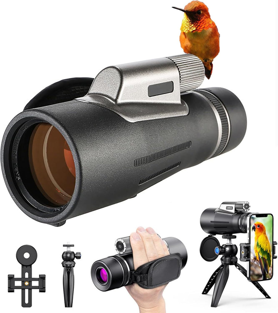 Professionelles 12x56 Monokular für Nachtsicht & Smartphone-Fotografie: Mit HD, BAK4 Prisma & FMC-Li