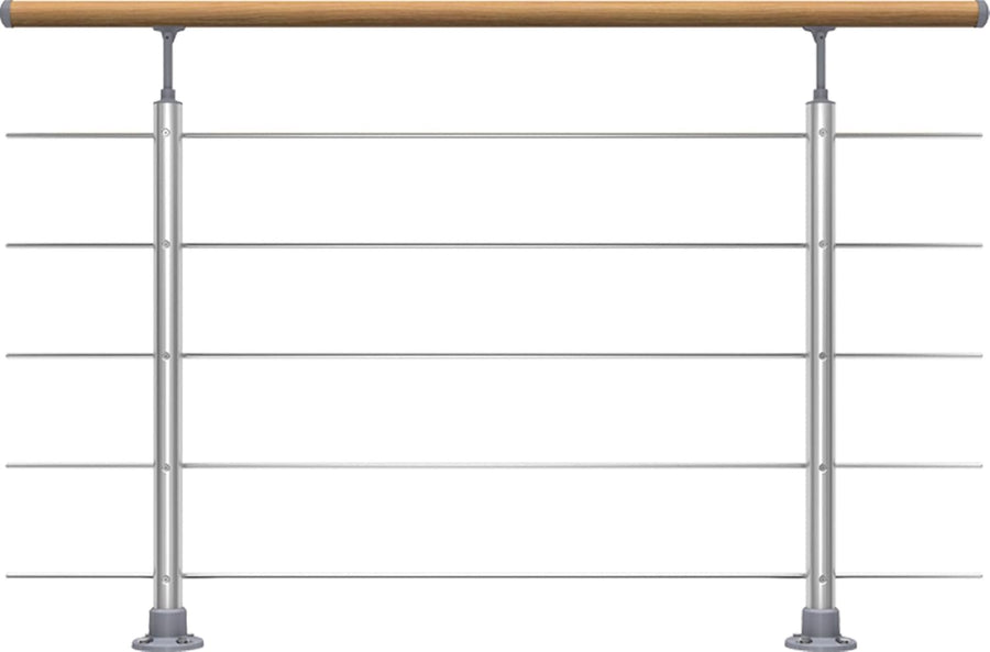 DOLLE Aluminium Geländer-Set Handlauf aus Eiche Füllstäbe aus Edelstahl aufgesetzte Montage 150 cm A