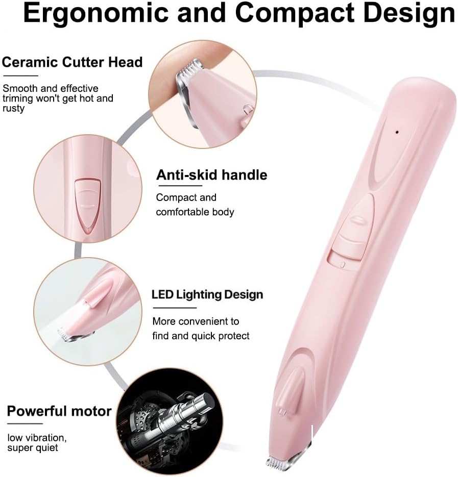 Kabellos Pfotentrimmer, Superleise Hundeschermaschine mit LED-Licht, Wiederaufladbarer Haustier Rasi