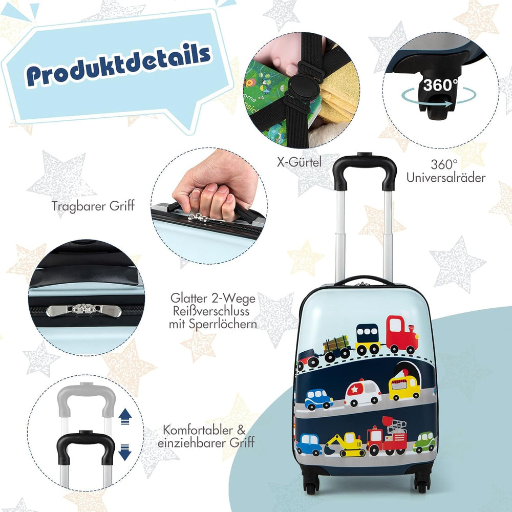 DREAMADE 2tlg. Kinderkoffer mit Rucksack, 16” + 12” Kinderkoffer Set , Kindertrolley Kindergepäck Ha