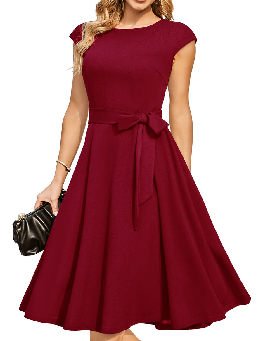 DRESSTELLS Cocktailkleid Damen Elegant 1950er Knielang Rockabilly Hochzeitkleid Vintage A-Line Swing