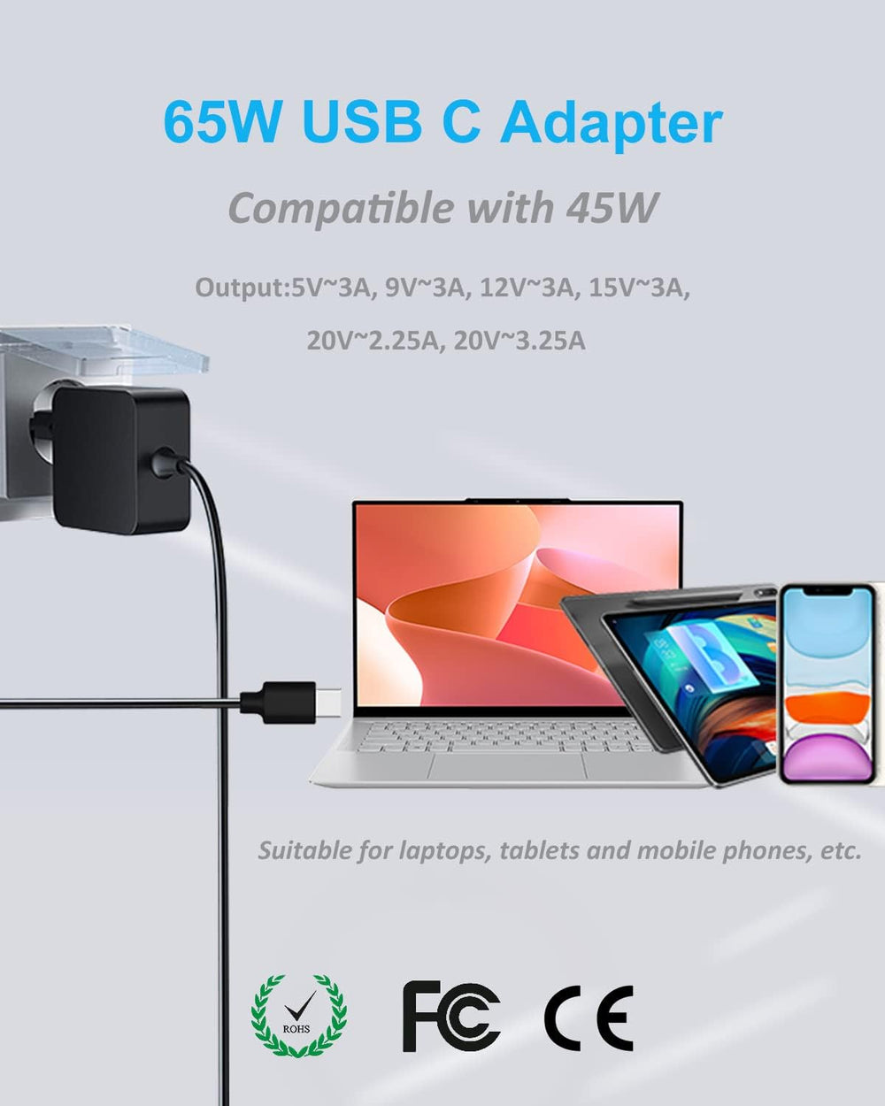 DTK Type C Ladegerät 65W USB C AC Netzteil für Laptop Lenovo, HP, ASUS, Dell, Acer, Samsung, Google
