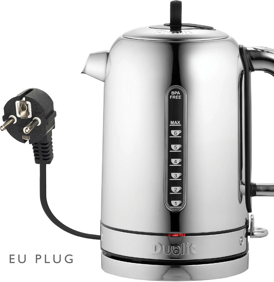 Dualit Classic Wasserkocher – Wasserkocher Design Edelstahl Hochglanz mit Schwarzem Rand –Schnellauf