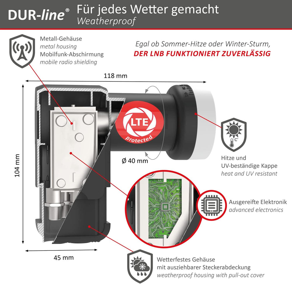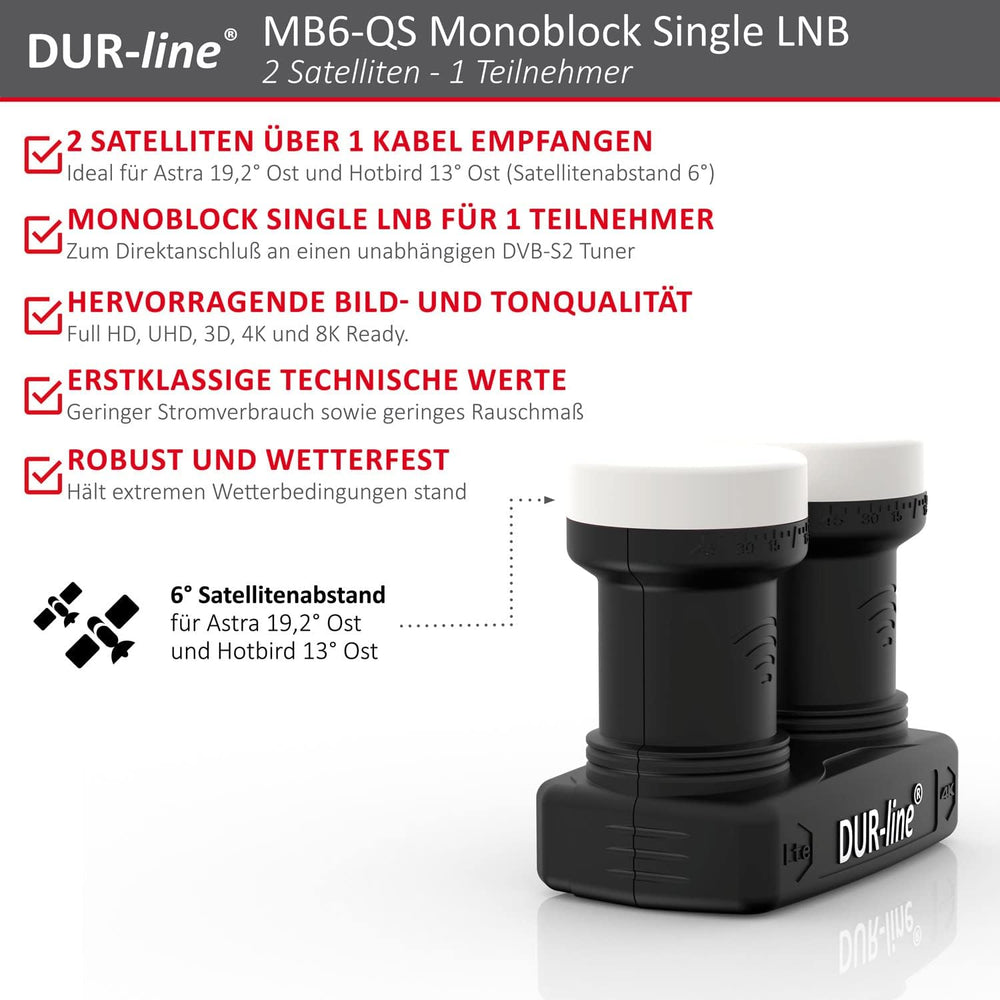 DUR-line 6° Monoblock Single LNB - Astra 19,2°E + Hotbird 13°E - 1 Teilnehmer & 2 Satelliten (MB6-US
