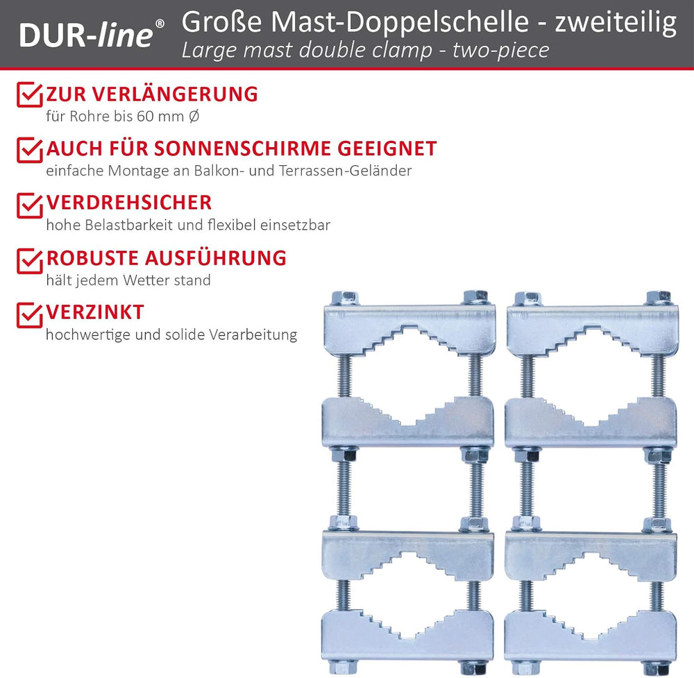 Doppel-Mastschellen-Set mit 2 Schellen; für Mast an Mast - Montage (Mastverlängerung)