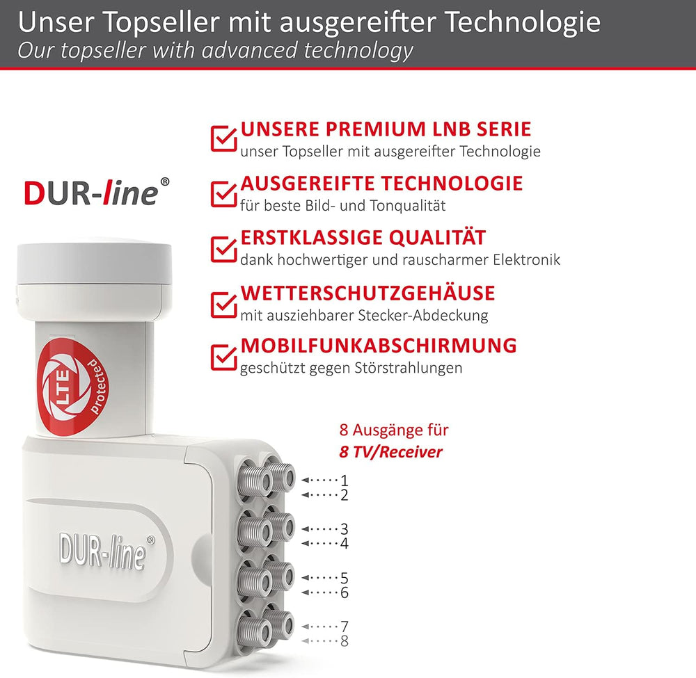 DUR-line +Ultra Octo LNB - 8 Teilnehmer weiss - mit LTE-Filter, 8-Fach, digital mit Wetterschutz, Fu