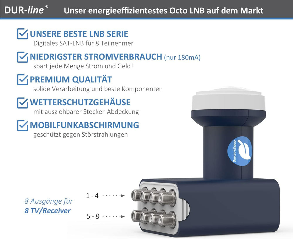 DUR-line Blue ECO Octo - Stromspar-LNB - 8 Teilnehmer - Premium-Qualität - 8-Fach, digital, Full HD,