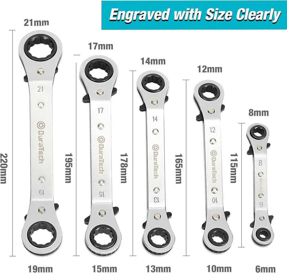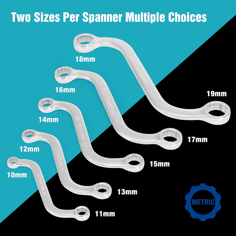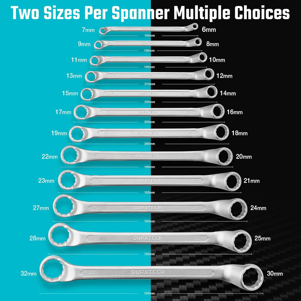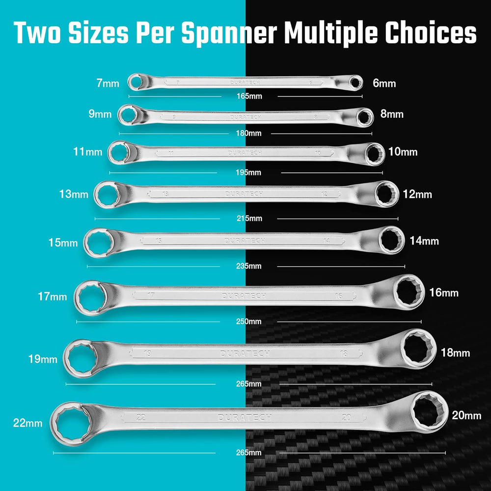 DURATECH Doppelringschlüssel-Satz, S-Form Ringschlüssel Schraubenschlüssel Set, 5-teilig, Metrisch,