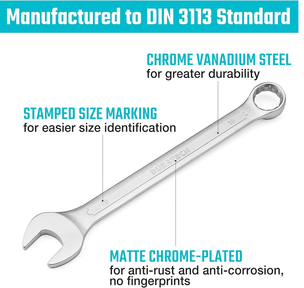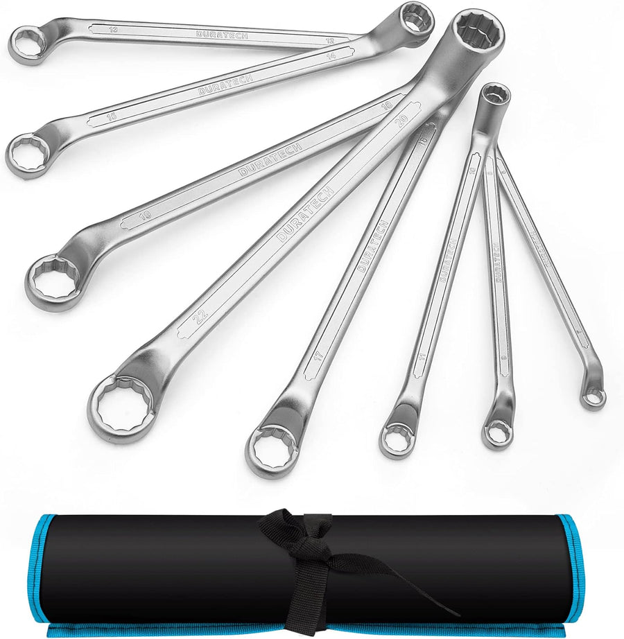 DURATECH Doppel-Ringschlüssel-Satz, Gekröpfter Schraubenschlüssel Set, um 75 Grad abgewinkelt, DIN 8