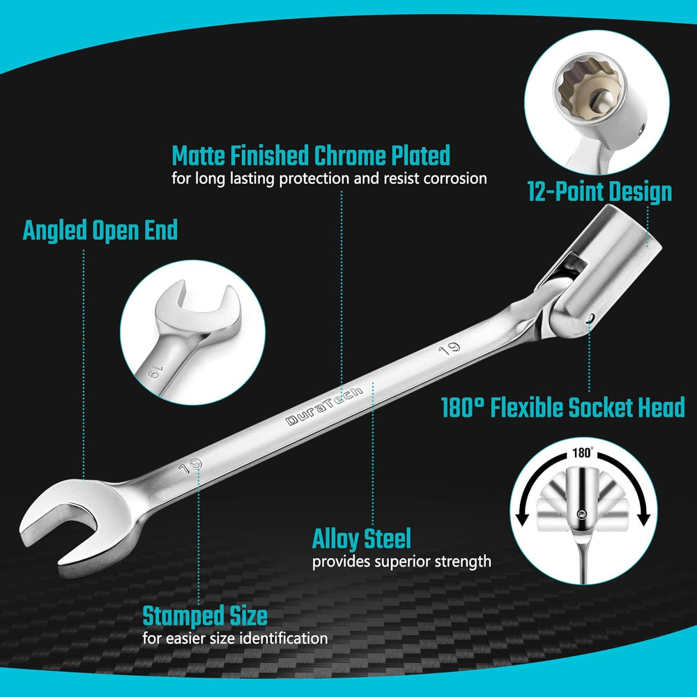 DURATECH Offener Ring-Steckschlüssel-Satz, Maul-Ringschlüssel mit flexiblen Köpfen Schraubenschlüsse
